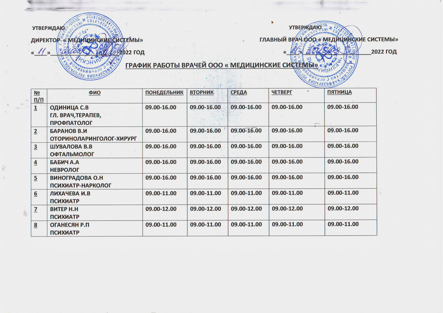 | ОДИНИЦА СЕРГЕЙ ВАСИЛЬЕВИЧ | ТЕРАПЕВТ-ПРОФПОТОЛОГ | Образование высшее Специализация терапия Крымский государственный медицинский университет имени С.И. Георгиевского, лечебное дело ФВ№755572 ОТ 26.06.1992 Повышение квалификации по терапии, Удостоверение, сертификат №0028 ОТ 10.01.2020 №0056 ОТ 24.01.2020 №0040 ОТ 20.01.2020 №0064 ОТ 02.03.2022 №1056 ОТ 17.01.2020 | ПОНЕДЕЛЬНИК-ПЯТНИЦА 09:00-16:00 |