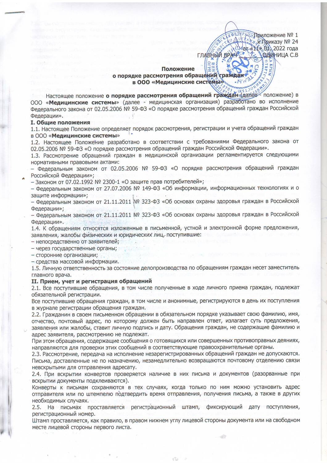 Положение о порядке рассмотрения обращений граждан в ООО "Медицинские системы"